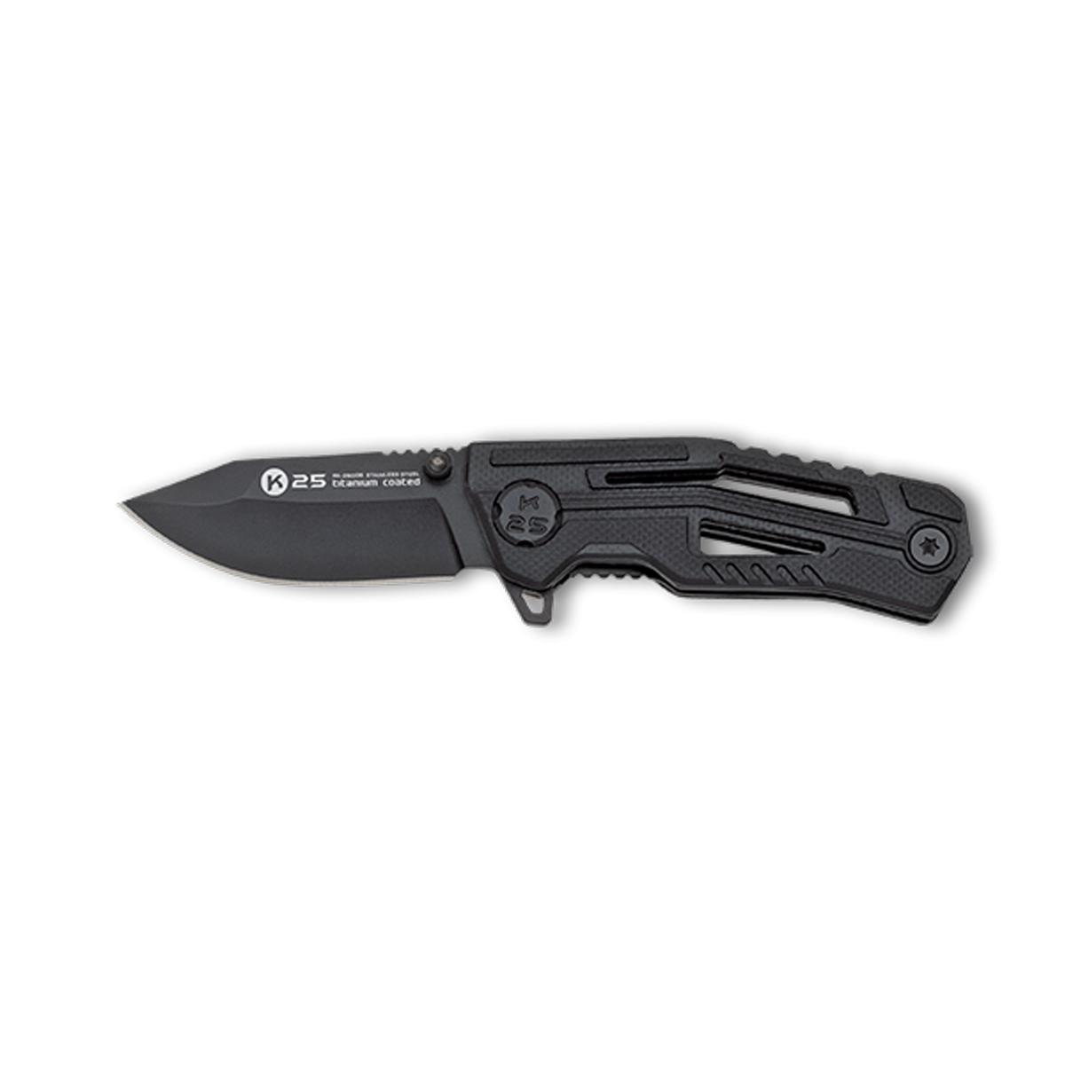 Navaja Táctica K25 Negra G10 Efecto Fibra Carbono