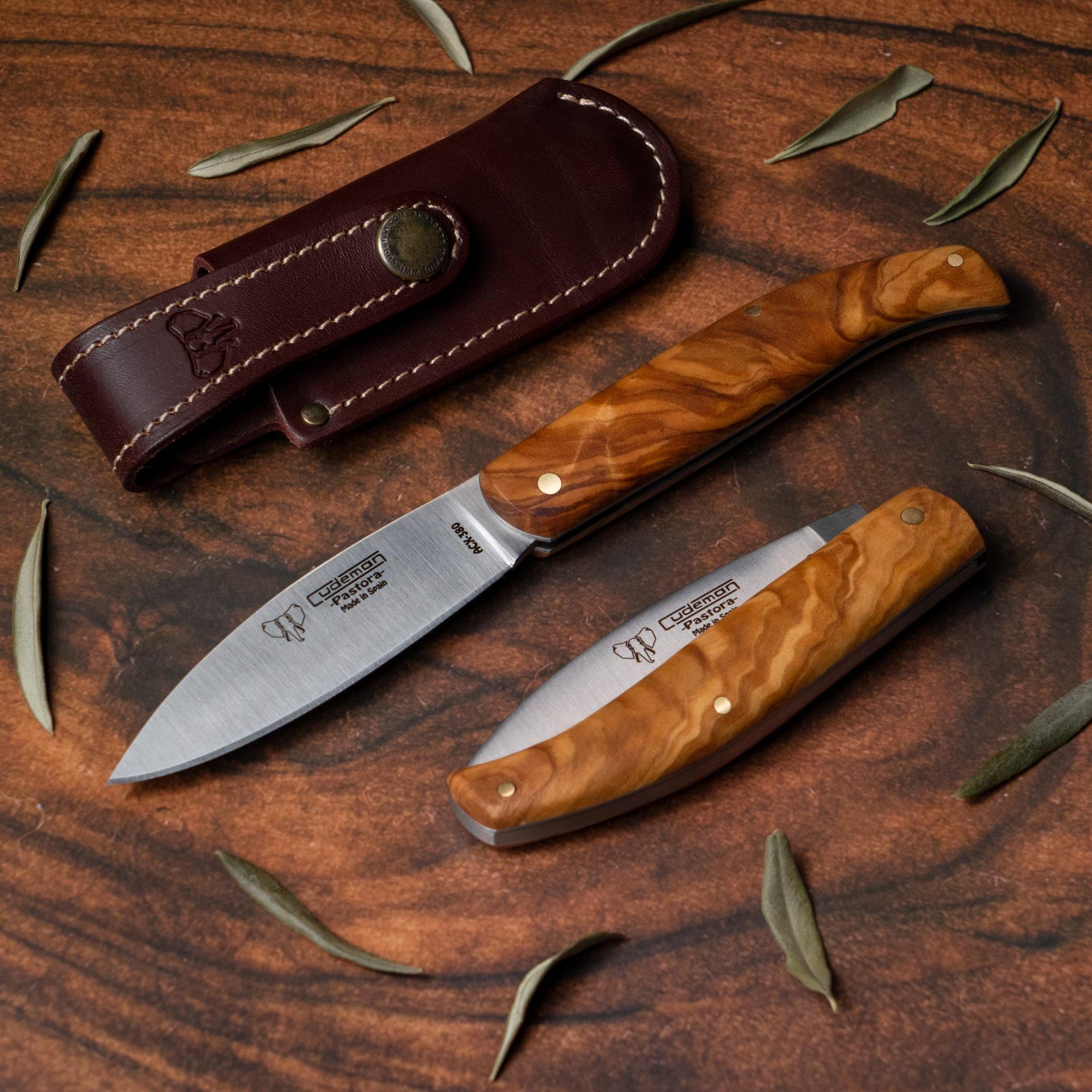Navaja Pastora CUDEMAN Mago Olivo Funda Cuero